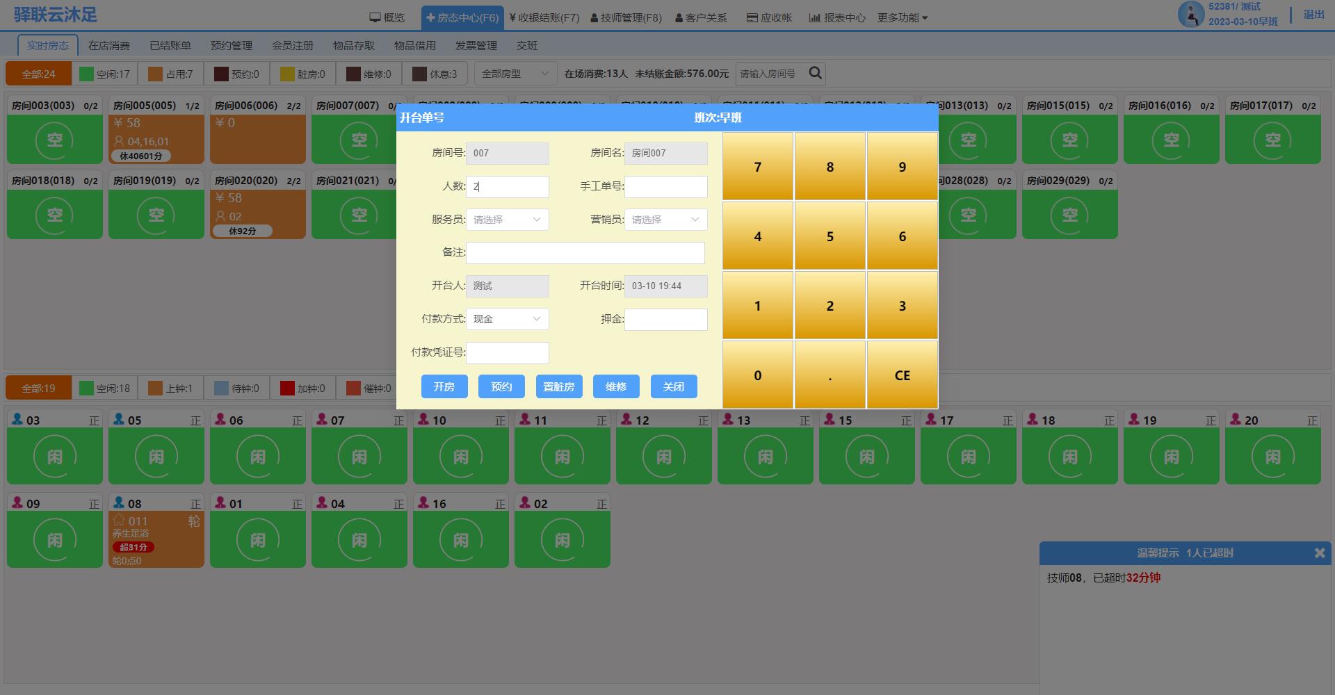 - 開(kāi)房接待 - 團(tuán)隊(duì)房間\技師預(yù)訂