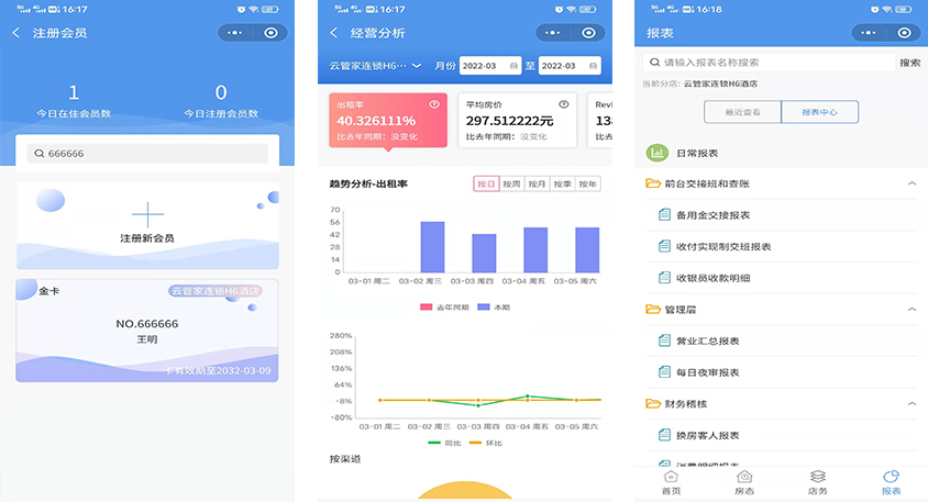 3、會(huì)員管理、營(yíng)業(yè)數(shù)據(jù)同比、環(huán)比進(jìn)行決策分析,交班與經(jīng)營(yíng)情況隨時(shí)查看。