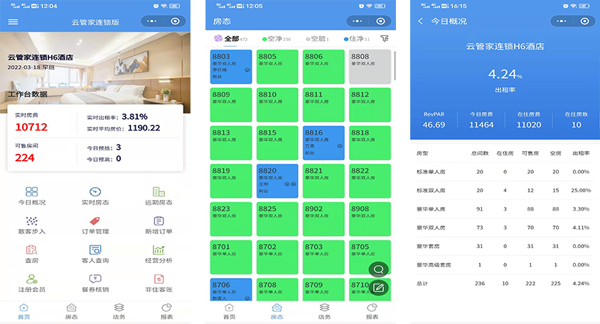 1、不管在哪里,都可以通過(guò)手機(jī)實(shí)時(shí)掌握酒店?duì)I業(yè)情況、實(shí)時(shí)房態(tài)、出租情況。