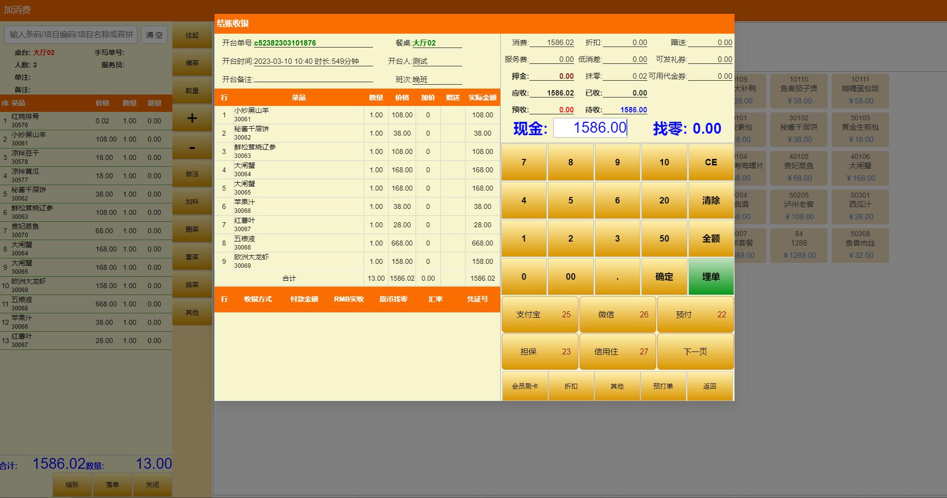 2.高效原則:在收到客人現(xiàn)金且金額正好的時(shí)候,服務(wù)員可以使用一鍵現(xiàn)金結(jié)帳的功能。通過選擇預(yù)設(shè)好的折扣規(guī)則,系統(tǒng)自動(dòng)快速計(jì)算相應(yīng)結(jié)帳金額。